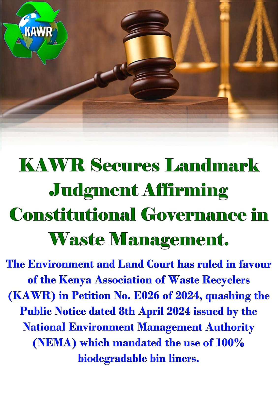 This judgment represents a significant victory for KAWR and, more broadly, for Kenya’s waste management and recycling sector.